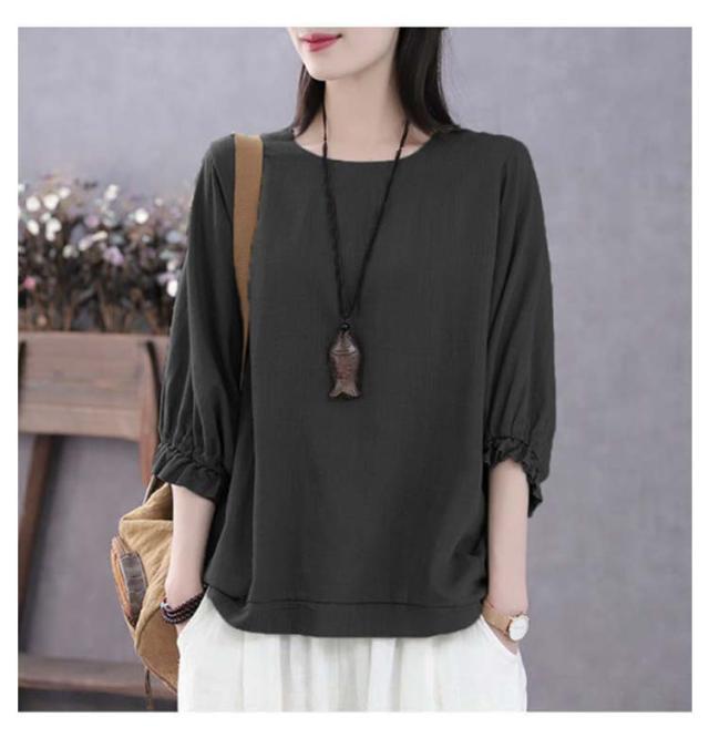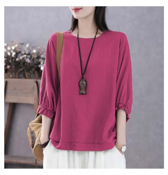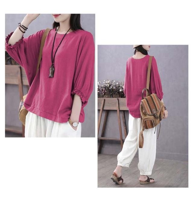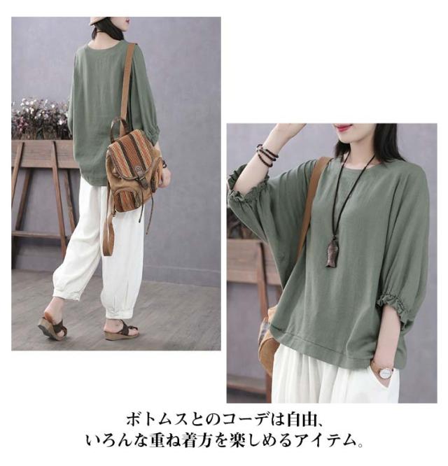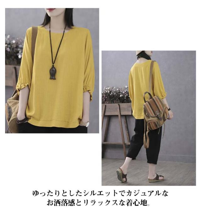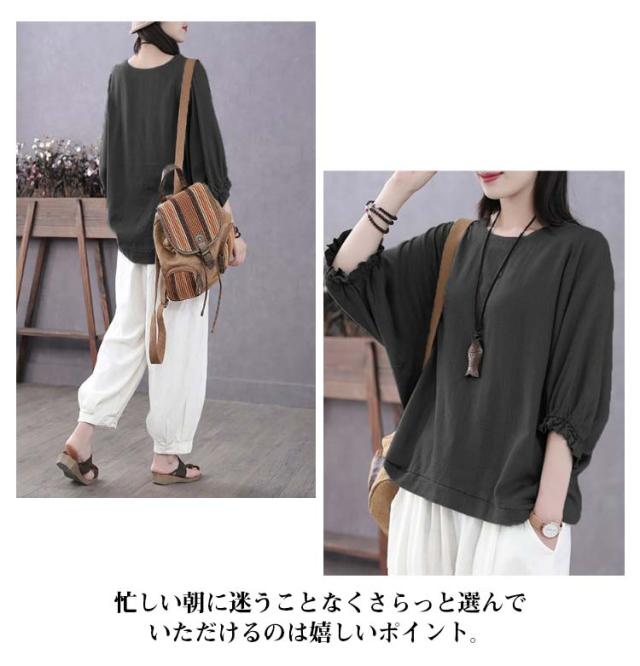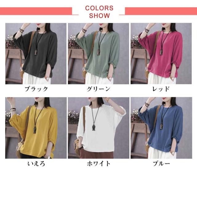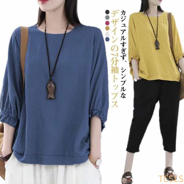 7分袖 ブラウス 七分袖カットソー レディース ゆったり Tシャツ 7分袖 Tシャツ レディース トップス プルオーバー カットソー 大人女性 大きいサイズ 体型カバー 春秋 薄手 夏服 無地 シンプル カジュアル おしゃれ 送料無料