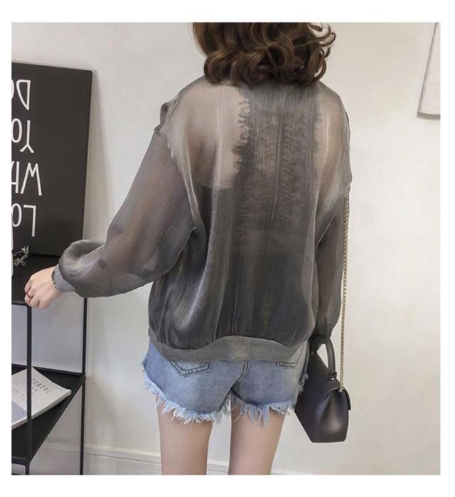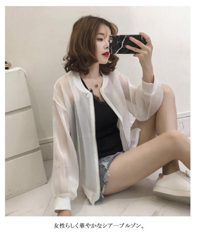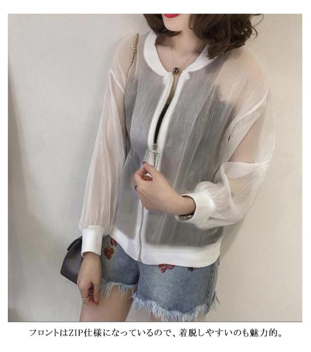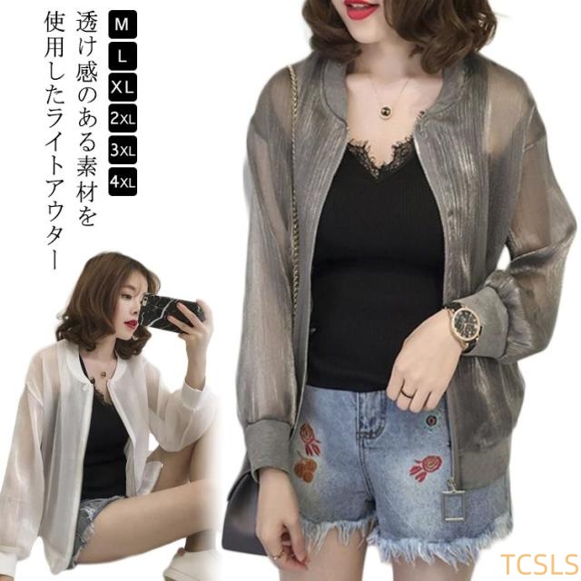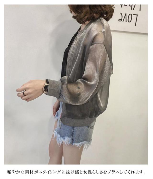 シア?ブルゾン UVパーカー ライトアウター レディース アウター ブルゾン 透け感 光沢感 可愛い ノーカラー ジップアップ ジャケット 羽織り 長袖 紫外線対策 日よけ対策 ショート シアー ゆったり 体型カバー ジップ ファスナー UVケア 冷房対策 春夏 送料無料