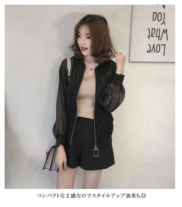 | 透け感のある素材を使用したライトアウター 女性らしく華やかなシア?ブルゾン。 軽やかな素材がスタイリングに抜け感と女性らしさをプラスしてくれます。 フロントはZIP仕様になっているので、着脱しやすいのも魅力的。 コンパクトな丈感なのでスタイルアップ効果も◎ | |