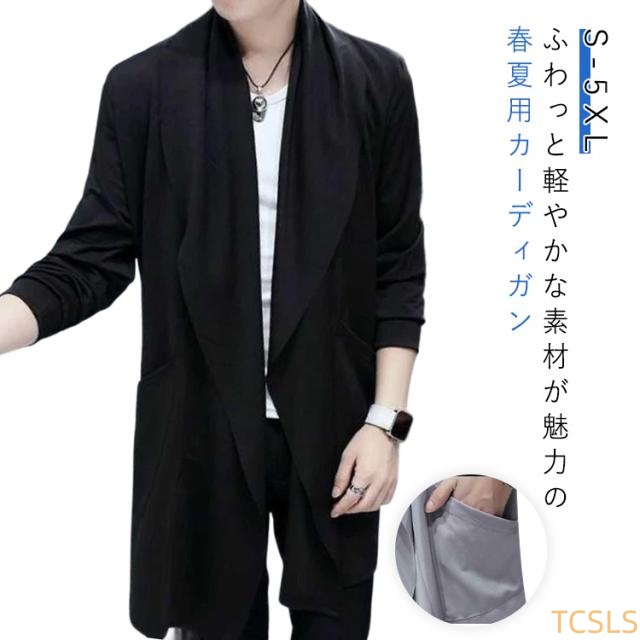 カーディガン メンズ 薄手 薄い 夏 長袖 サマーカーディガン ロングカーディガン トップス サマージャケット メンズファッション ロング丈 羽織 UVカット 日焼け対策 冷房対策 お出かけ 冷房対策 薄め 薄手 長め ミドル丈 送料無料