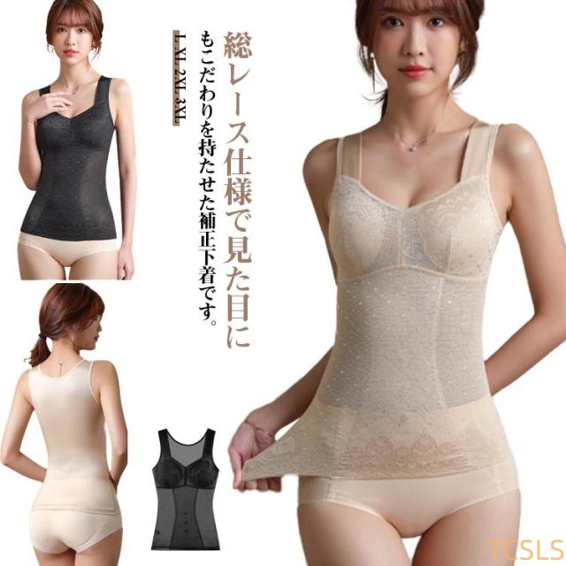補正下着 ブラトップ レディース カップ付き レース ノンワイヤー 総レース 通気性 補正ブラ キャミソール ウエスト タンクトップ 薄手 お腹引き締め ボディシェイパー 無地 シンプル ウエストニッパー インナー バストアップ ダイエット 補正インナー