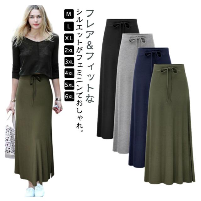マーメイドスカート リブ ロングスカート マキシスカート フレアスカート スリット入り レディース マキシ丈 無地 ニッソー スカート タイト&フレア フェミニン 大きいサイズ 大人可愛い ボトムス 韓国ファッション 送料無料