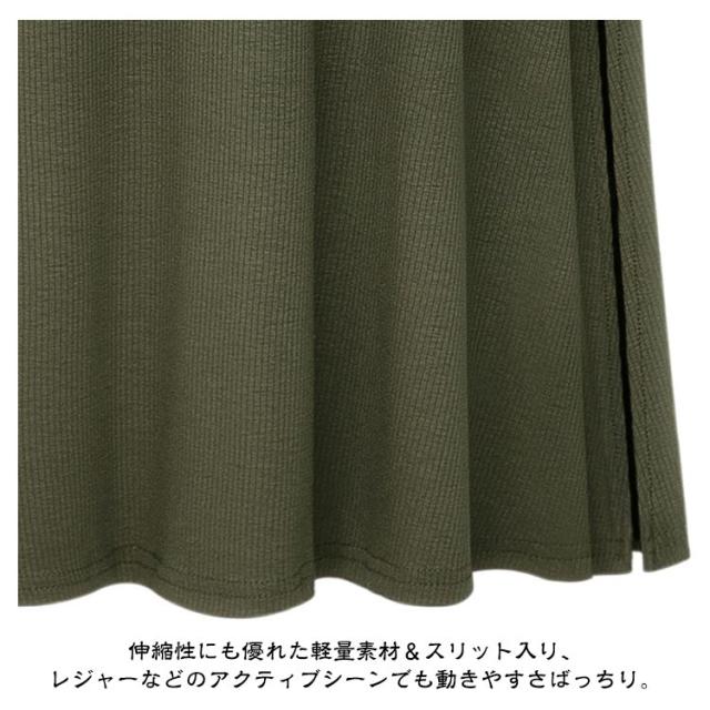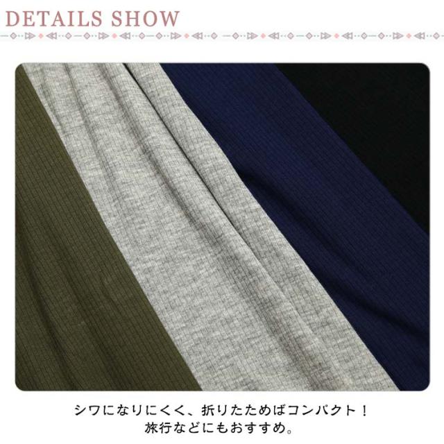 | フレア&フィットなシルエットがフェミニンでおしゃれ。 サラッと滑らかな質感のリブ生地を使用。すとんと落ちてめくれ上がることなく、快適な着用感! 締めつけ感のないウエストゴム仕様なので、ストレスフリーな着心地。 伸縮性にも優れた軽量素材&スリット入り、レジャーなどのアクティブシーンでも動きやすさばっちり。 シワになりにくく、折りたためばコンパクト!旅行などにもおすすめ。 | |