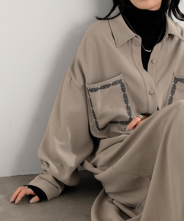 こだわりの刺繍デザインがアクセントになって、こなれ感のあるスタイリングに。