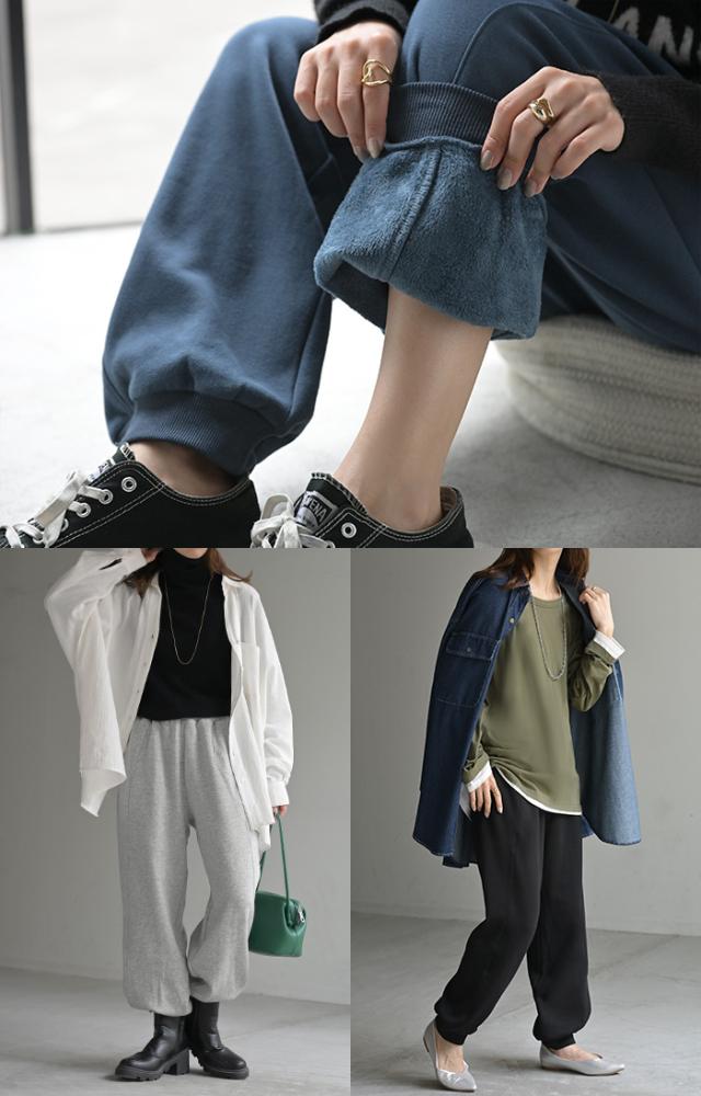 家でも外でも着られる、裏シャギーのあったかジョガーパンツです。