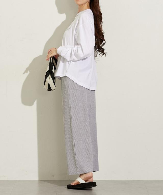 品質=[本体]綿100% [リブ部分]綿95%・ポリウレタン5% 透け感: 淡色はややあり 伸縮性:ややあり 生地の厚み:普通 光沢感:なし 裏地:なし 季節:秋 シルエット:普通 原産国:バングラデシュ製 備考:洗濯機OK ネット使用 ※単位:cm※商品サイズは、仕上がりサイズです。※サイズの誤差は多少発生します。ご了承ください。