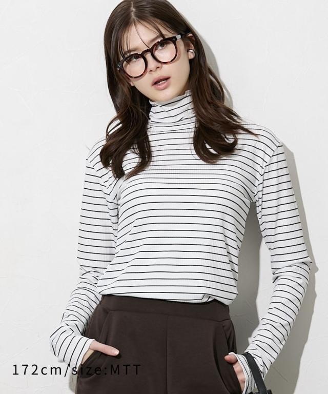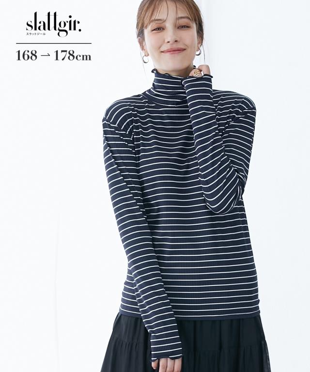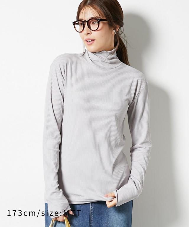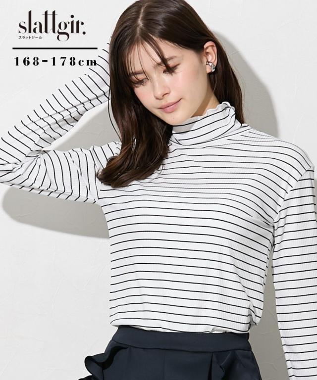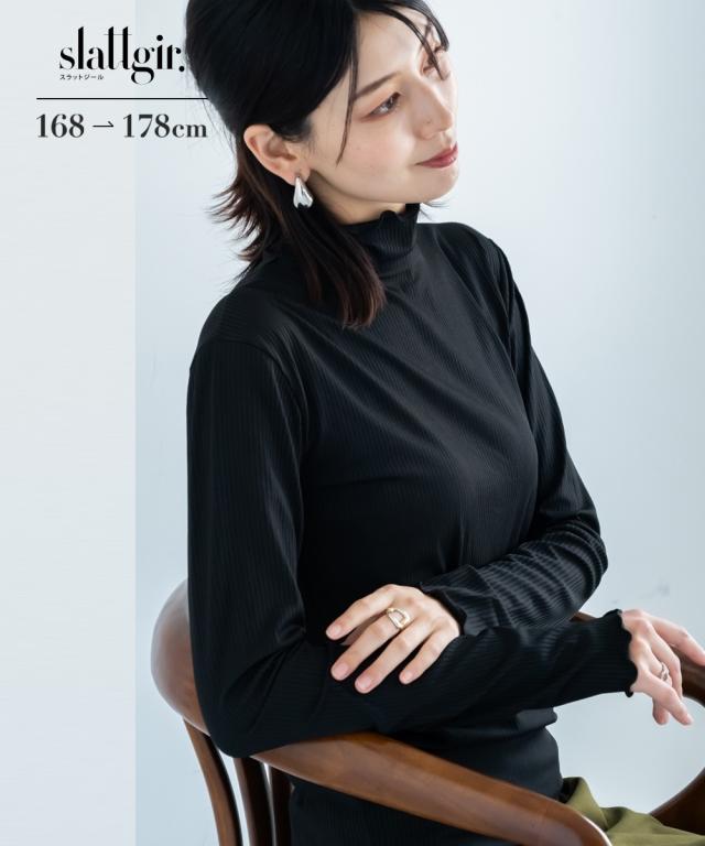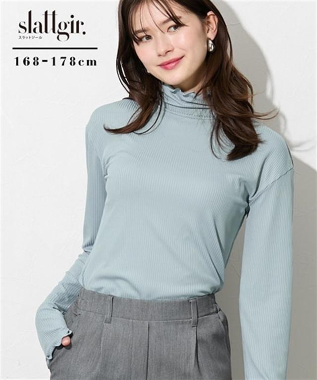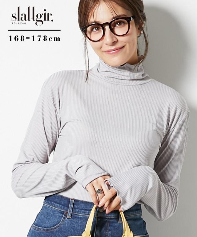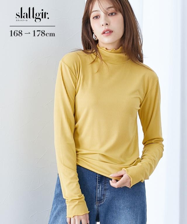 Tシャツ カットソー トールサイズ レディース 高身長 細リブ ハイネック 大きいサイズ