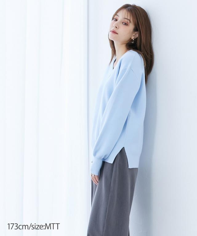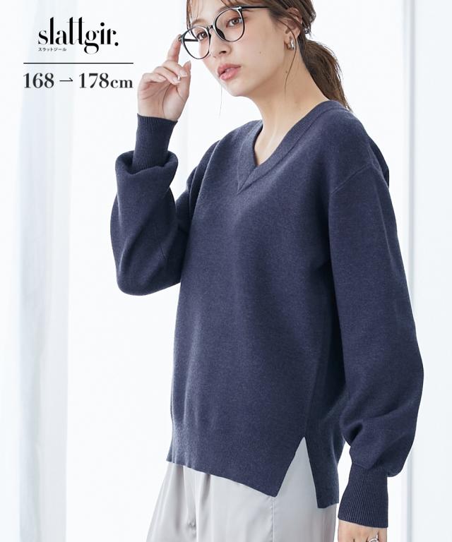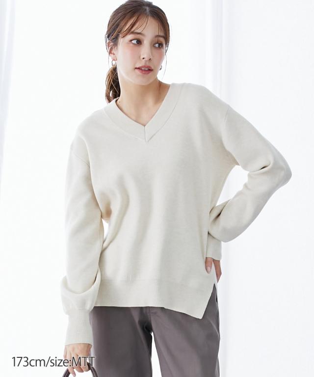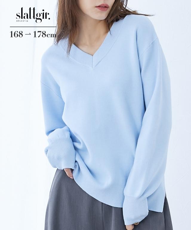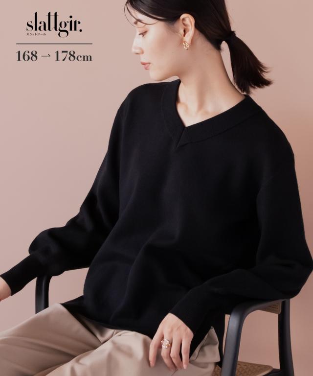 【高身長な方向け】人気のスウェットライクニットシリーズがトールサイズで新登場!ニットの上質感とスウェットのリラックス感をミックスした、新感覚の着心地トップス!■デザイン・抜け感のある太めリブのスッキリVネックニットで、ハイゲージニットでありながらしっかりとした風合いがあり、高見えします。・左右の裾にスリットが入っており、きれいめに見える印象。■素材・ニットの「上品で肌ざわりのよい質感」とスウェットの「着心地のよい伸縮性」をミックスした素材。・チクチクしにくく、モチモチとした心地よいやわらかさ。・ストレッチの効いた糸を、ほどよい厚みの生地に仕立てることで、快適な着心地を実現しました。■おすすめのスタイリング・カジュアルからキレイ目スタイルまで着こなせます。・裾リブで軽くブラウジングできるのでスカートにもパンツにも合わせやすいアイテムです。※高身長な方向けに通常サイズより丈長めに設計しています。