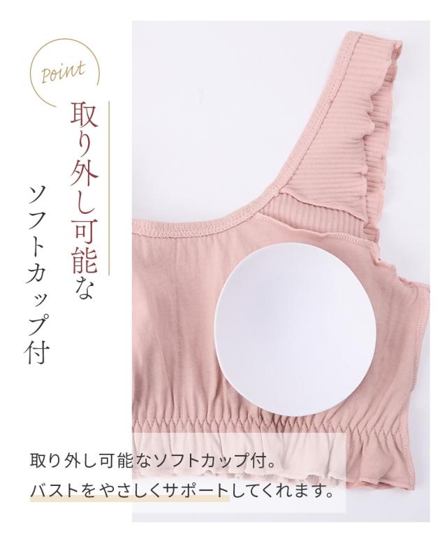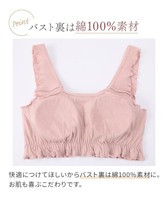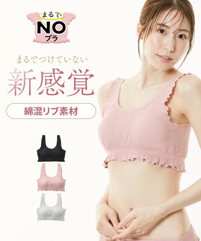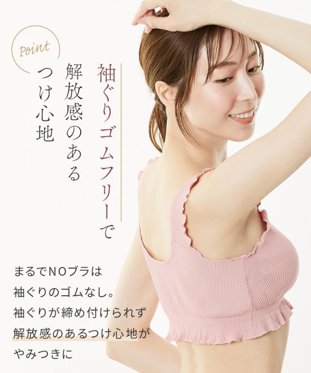 ●まるでNOブラ ハーフトップブラジャー●まるでNOブラまるでつけていない新感覚毎日を快適に過ごすための新提案ブラジャーの締め付けから解放その感覚、まるで…『つけていない』◇◆◇おすすめポイント◇◆◇■袖ぐりゴムフリーで解放感のあるつけ心地まるでNOブラは袖ぐりのゴムなし。袖ぐりが締め付けられず、解放感のあるつけ心地がやみつきに■アンダーゴムが肌にあたらず快適アンダーゴムは外付けなので、ゴムが肌にあたらず快適■バスト裏は綿100%素材快適につけてほしいから、バスト裏は綿100%素材に。通気性もありムレにくい。お肌も喜ぶこだわりです。■取り外し可能なソフトカップ付取り外し可能なソフトカップ付。バストをやさしくサポートしてくれます。■ひらっとしたデザインがかわいい袖ぐり・バスト下はひらっとしたデザインがかわいい。締め付けからの解放も、可愛さも叶えます。■表情のある綿95%のリブ素材シンプルながら表情のある綿95%のリブ素材。ストレッチ性もあり、快適なつけ心地です。■チクチクしないプリントネームプリントネームなのでタグのチクチク感が気にならずさらに快適なつけ心地です。■コンパクトにたためて携帯用に便利■締めつけない