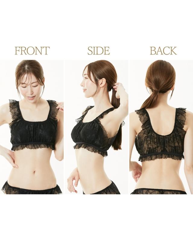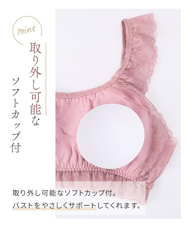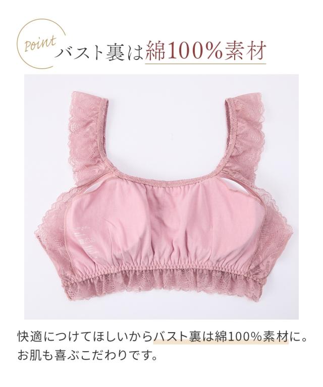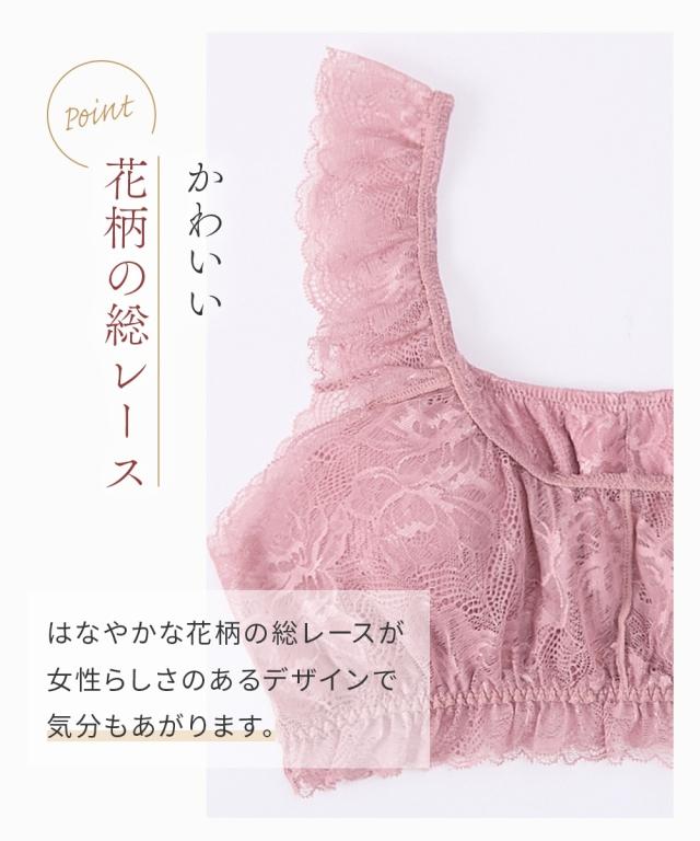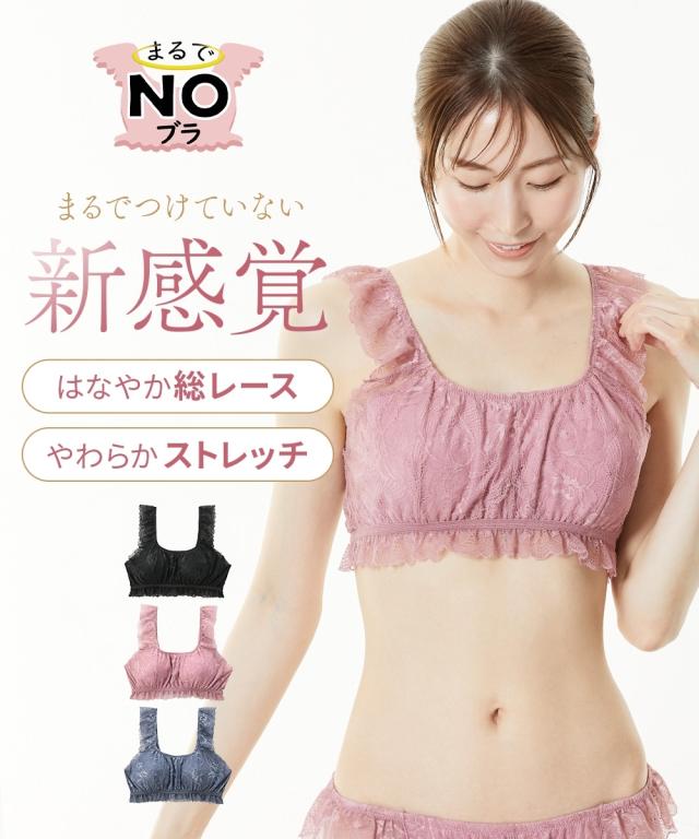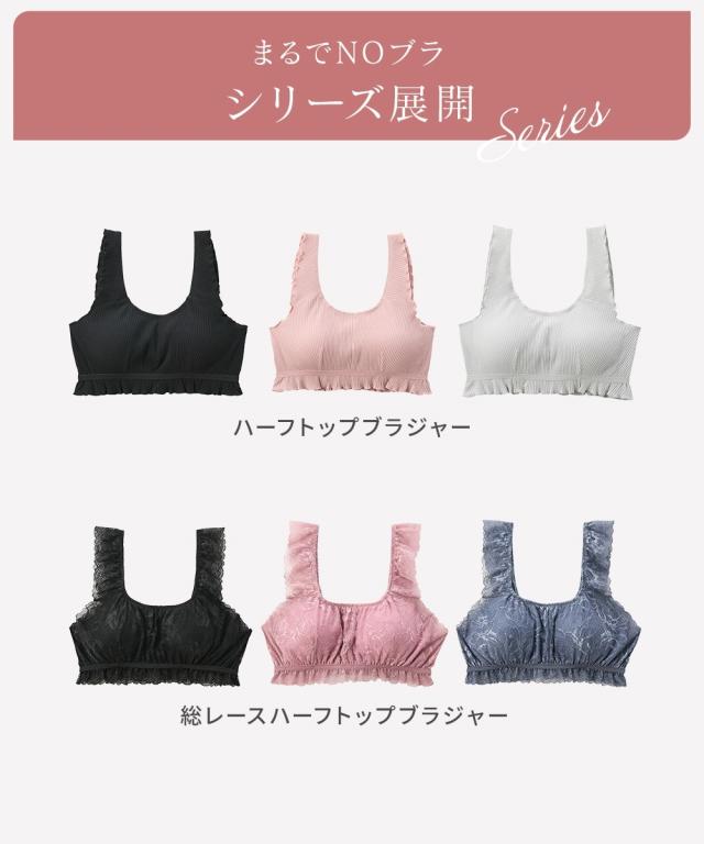 ●まるでNOブラ 総レースハーフトップブラジャー●まるでNOブラまるでつけていない新感覚・はなやか総レース・やわらかストレッチ毎日を快適に過ごすための新提案ブラジャーの締め付けから解放その感覚、まるで…『つけていない』◇◆◇おすすめポイント◇◆◇■袖ぐりゴムフリーで解放感のあるつけ心地まるでNOブラは袖ぐりのゴムなし。袖ぐりが締め付けられず、解放感のあるつけ心地がやみつきに■アンダーゴムが肌にあたらず快適アンダーゴムは外付けなので、ゴムが肌にあたらず快適■バスト裏は綿100%素材快適につけてほしいから、バスト裏は綿100%素材に。通気性もありムレにくい。お肌も喜ぶこだわりです。■取り外し可能なソフトカップ付取り外し可能なソフトカップ付。バストをやさしくサポートしてくれます。■ひらっとしたデザインがかわいい袖ぐり・バスト下はひらっとしたデザインがかわいい。締め付けからの解放も、可愛さも叶えます。■かわいい花柄の総レースはなやかな花柄の総レースが女性らしさのあるデザインで気分もあがります。■チクチクしないプリントネームプリントネームなのでタグのチクチク感が気にならずさらに快適なつけ心地です。■コンパクトにたためて