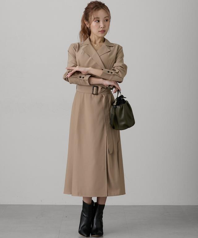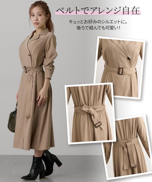 ワンピース ロング マキシ レディース 大きい胸専用 2WAYトレンチ風ディティール にもなる コート ひざ下 | 3L | ニッセン nissen