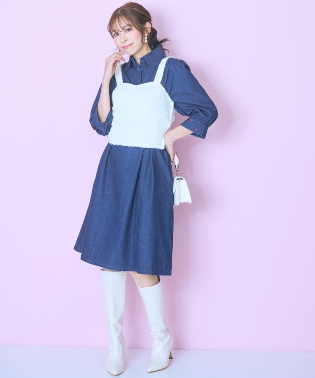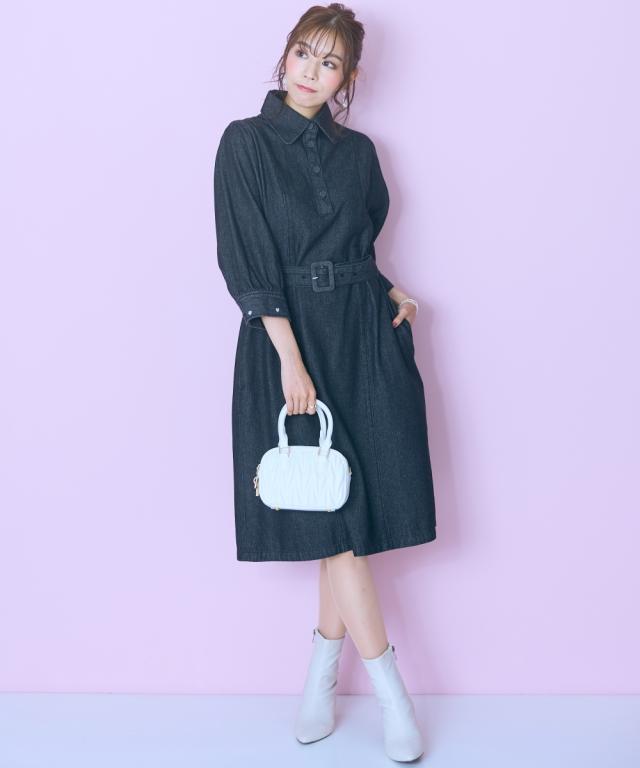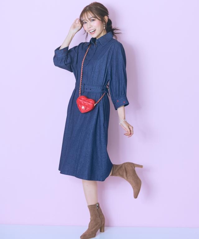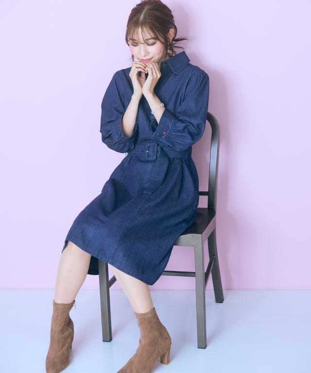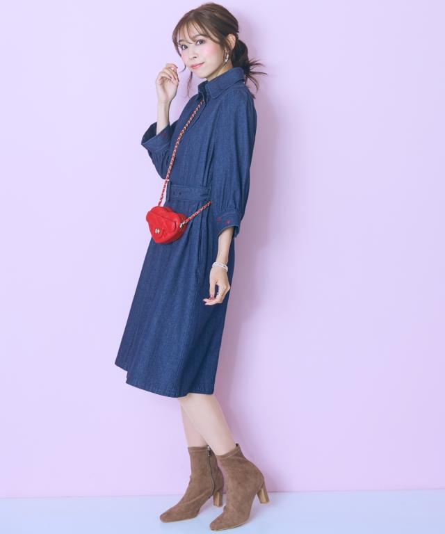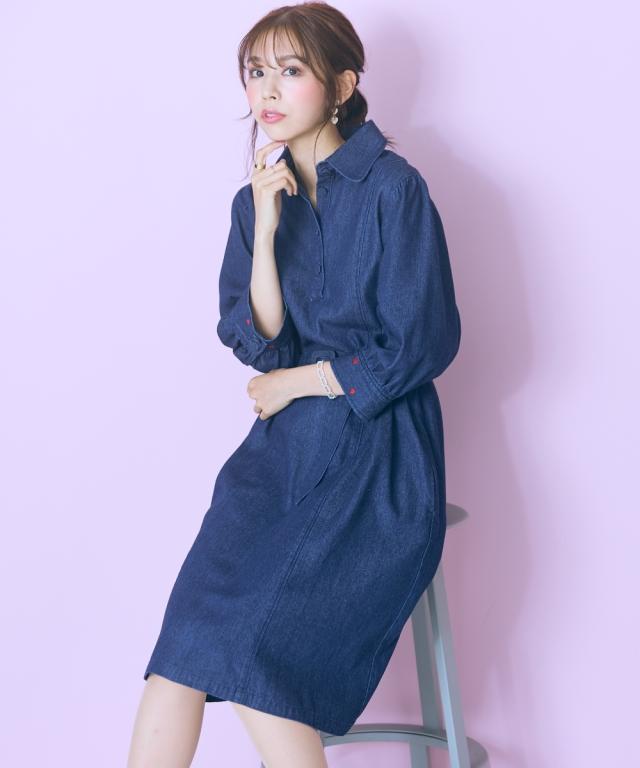 デニムのカジュアルさとハート刺しゅうの甘さが絶妙にマッチしたシャツワンピース。■デザインカジュアルデザインながらも袖口のハート刺しゅうがさりげなくキュートさを演出。付属のベルトでウエストマークすればスタイルアップ効果も期待できます。■素材本格的なデニム生地ですが、着心地は軽めなので普段使いにもオススメです。■おすすめのスタイリング1枚で着るのはもちろんカジュアルな着こなしから、デートスタイル・通勤など様々なシーンで活躍してくれること間違いなしの万能アイテムです。