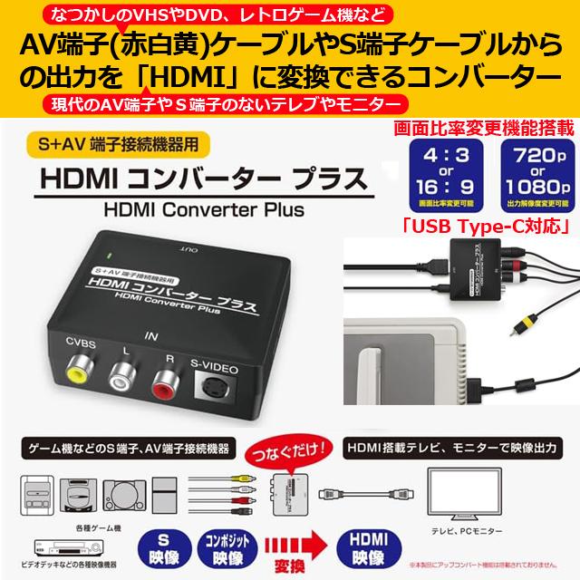 S+AV端子接続機器用 HDMIコンバータープラス レトロゲーム機 VHSビデオデッキ DVDプレイヤー AV端子 S端子 HDMIに変換 画面比率変更機能 USB Type-C対応