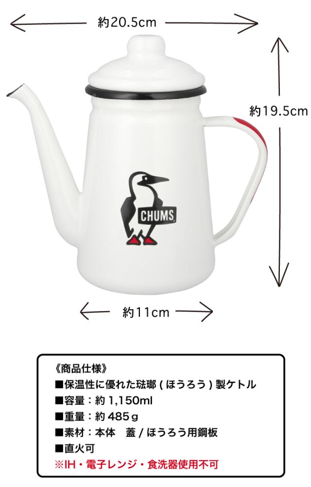 CHUMS チャムス エナメル ケトル 琺瑯 ほうろう ホウロウ ホーロー 直火可 細口 やかん ヤカン ティーポット 食器 保温性 アウトドア キャンプ バーベキュー コーヒー ドリップ 可愛い プレゼント 化粧箱あり Enamel Kettle CH62-2176