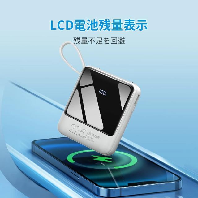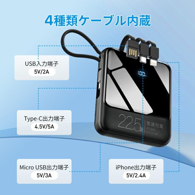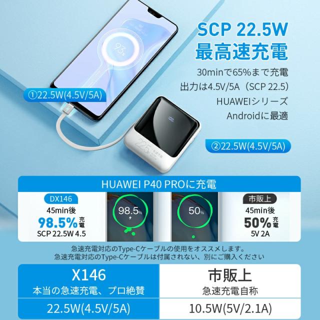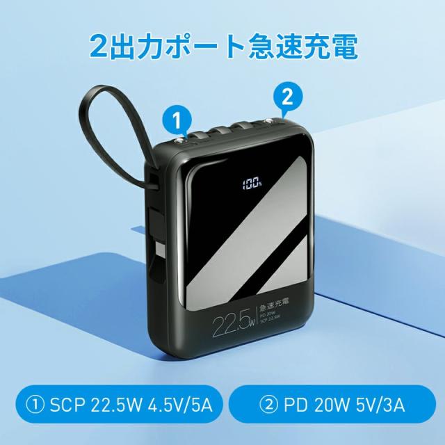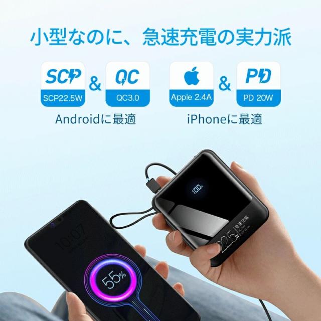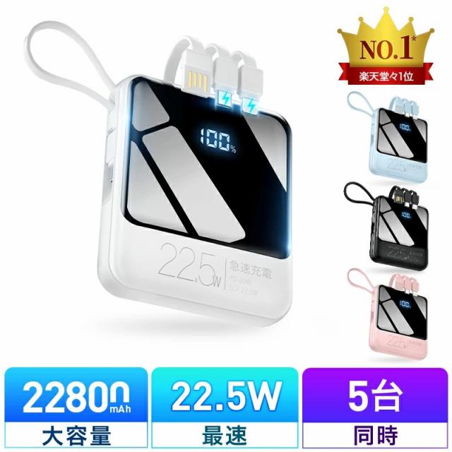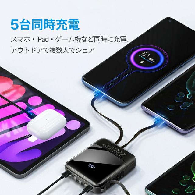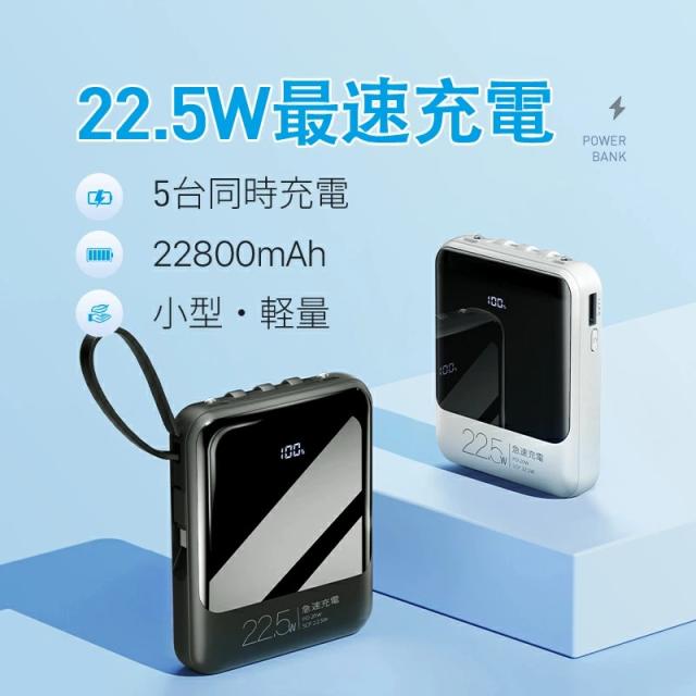 モバイルバッテリー 軽量 小型 22800mAh 国内累計販売300,000個+ バッテリー 大容量 22.5W 急速充電 5台同時充電 充電器 ケーブル内蔵 携帯充電器 SCP 22.5W/PD 20W/QC 3.0最速 機内持込 防災グッズ