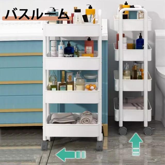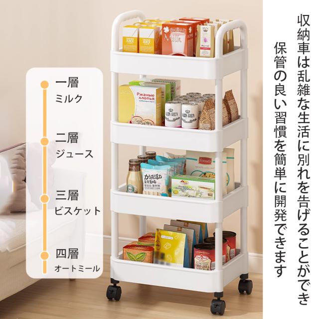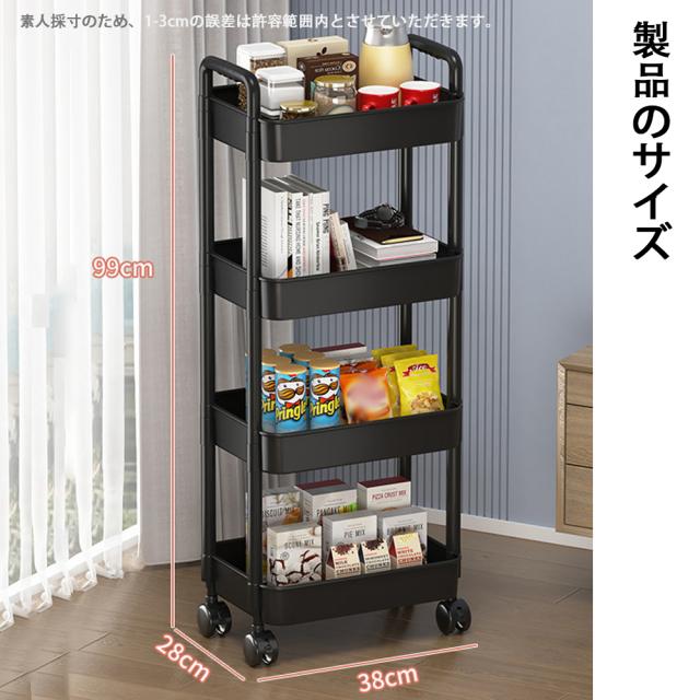 【キャスター付きで移動便利】移動、固定に便利なロック付きキャスター採用、360°自由に回転することもでき、方向を柔軟に変更しますので、清掃もやすくなります。平らでない表面でもぐらぐら揺れませんので安心に使えます。 【 取付簡単】一人でも簡単に組み立てることができて。 【簡単収納】書類や小物はもちろん、食材のストックなど、キッチン整理用のワゴン収納もできますし、どこでも手に入れる可能です。 【軽くて丈夫の4段のラック】非常に頑丈です。カゴのメッシュが細かくて物を載せやすくしています。またトレーを外すことができ、掃除もしやすくなります。中身が見えますので、探しやすく通気性も良くて便利です。