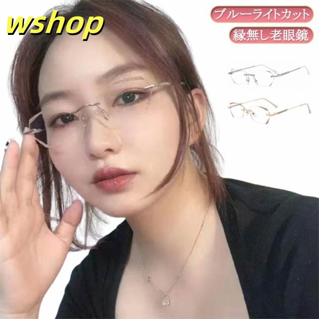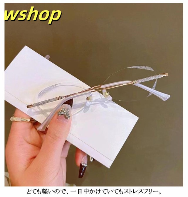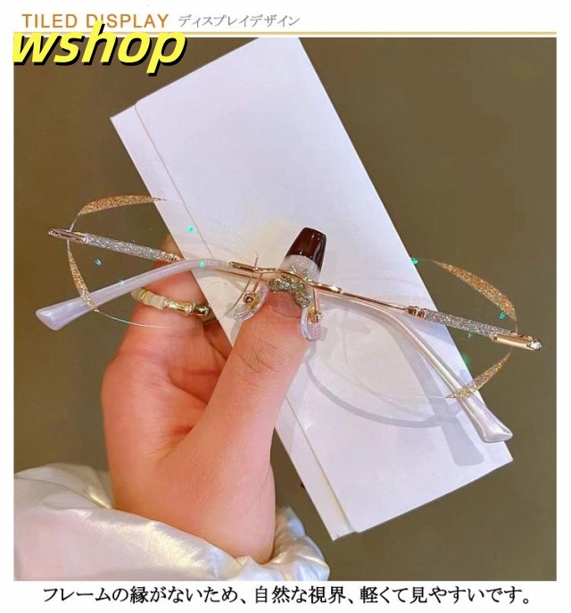 話題商品 SNS話題 老眼鏡 コンパクト おしゃれ 】レディース PCメガネ 軽い キラキラ 母の日 リーディンググラス 【wshop 度付き 女性 パソコン用メガネ ふちなし 上品 かわいい シニラス 軽量 ブルーライトカット 枠がない 送料無料