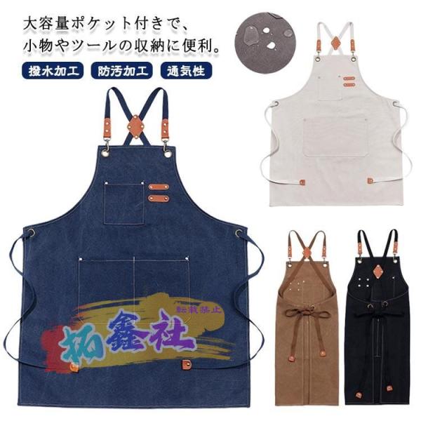 デニム 撥水加工 メンズ 男女兼用 ワークエプロン 長めストラップ エプロン エプロン 大容量ポケット キッチン 防汚加工 通気性 無地 飲食店 作業