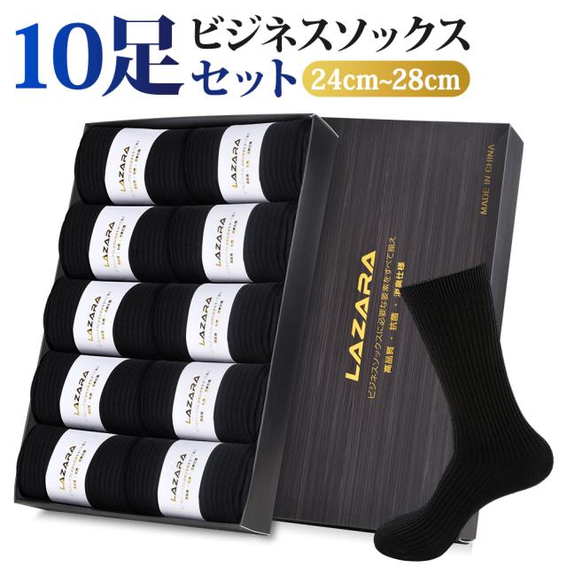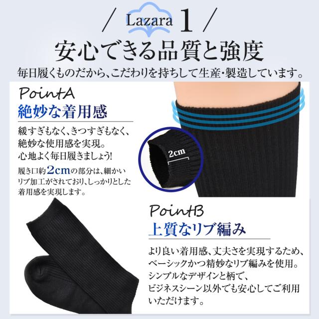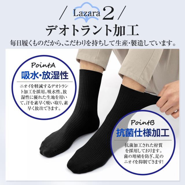 靴下 メンズ靴下 ソックス メンズ 抗菌防臭 ビジネスソックス 紳士ソックス 黒 抗菌 防臭 消臭 吸汗性 吸湿 無地 シンプル LAZARA リブ編み メンズソックス ビジネス靴下