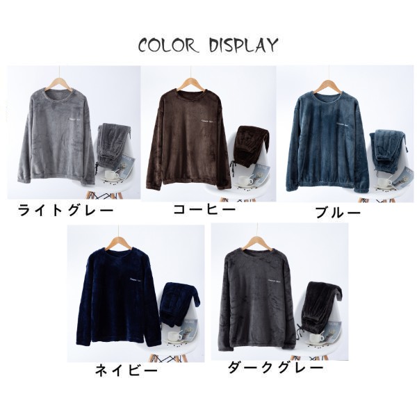 商品詳細:カラー:/ライトグレー/コーヒー/ブルー/ネイビー/ダークグレーサイズ:/L/XL/2XL/3XL【商品説明】楽チンな雰囲気の中にも、おしゃれ感があるところが人気のポイント☆柔らかい生地は肌にやさしくて、爽やかな着心地にうっとり♪ほっとしたいオフの日は、リラックススタイルで過ごしましょう♪【素材】サンゴネル【ご注意】※素人採寸のため、誤差は予めごください。※商品はデジカメ撮影をしておりますので、ご覧になっている画面の明るさ等により、実際の商品と多少色味が異なる場合がございます。※色味が異なる、臭いなどの理由の交換、返金はお受けできません。ごくださいませ。※商品は縫製上の細かいほつれ、汚れ、素材特有の臭いや接着剤等の臭いが残っている場合がございますので、気になるお客様はご購入をお控え下さい。【キーワード】ルームウェア パジャマ 紳士服 厚手 暖かい フランネル 無地 ふわもこ 2点パジャマ サンゴネル 綿 寝巻き 男性用 ふわふわ 秋冬 長袖シャツ 上下セット 部屋着 カットソー 裏起毛 新作 柔らかい 防寒着 暖かい 冬用 ルームウェア
