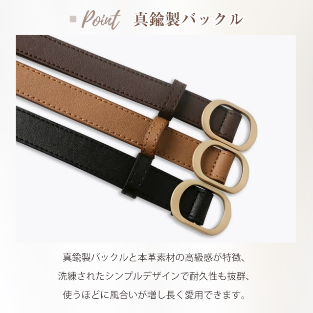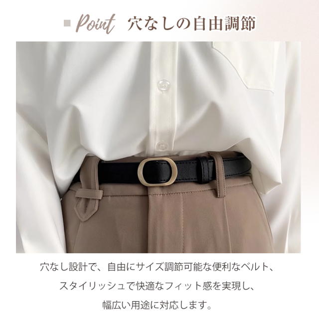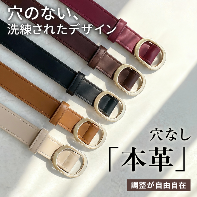 ベルト レディース 穴なし バックル 真鍮 細 ジーンズ 調整可能本革 おしゃれ ワンピース用 105cm 細身 細め 革 かわいい 細い 黒 細 太 ブランド ビジネス 社会人 学生 中学生 高校生 女性 スーツ 通勤 通学 就活 プレゼント 送料無料