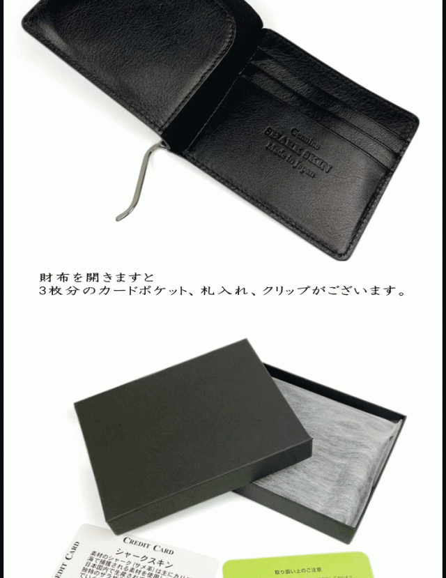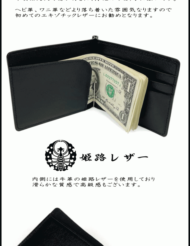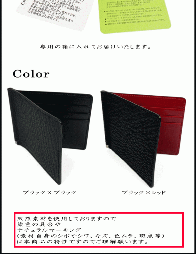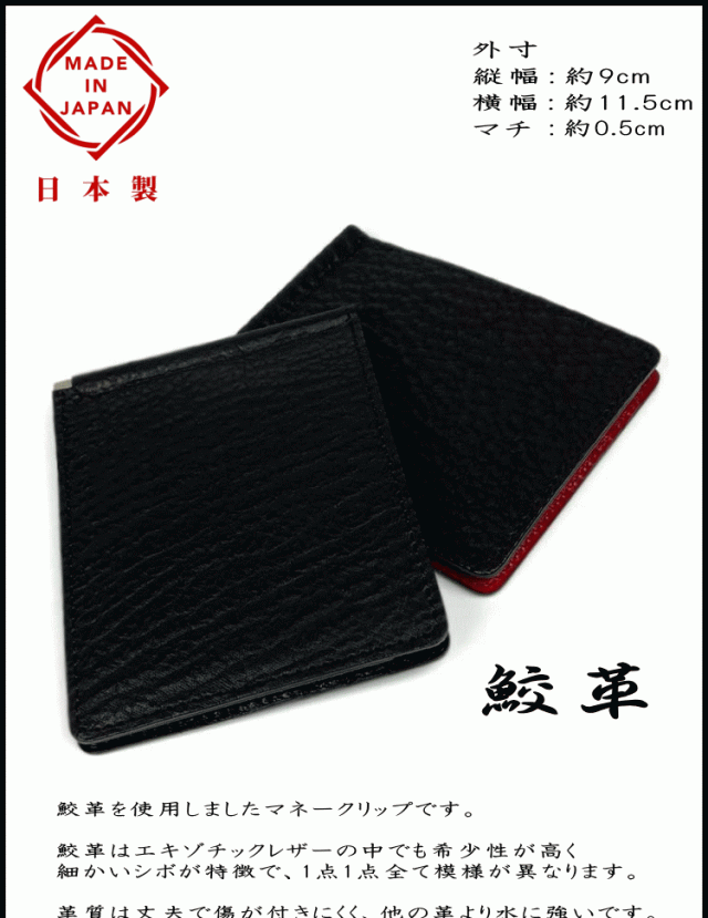 財布 鮫革 シャークスキン 日本製 姫路レザー 本革 マネークリップ LY1303 シャークレザー
