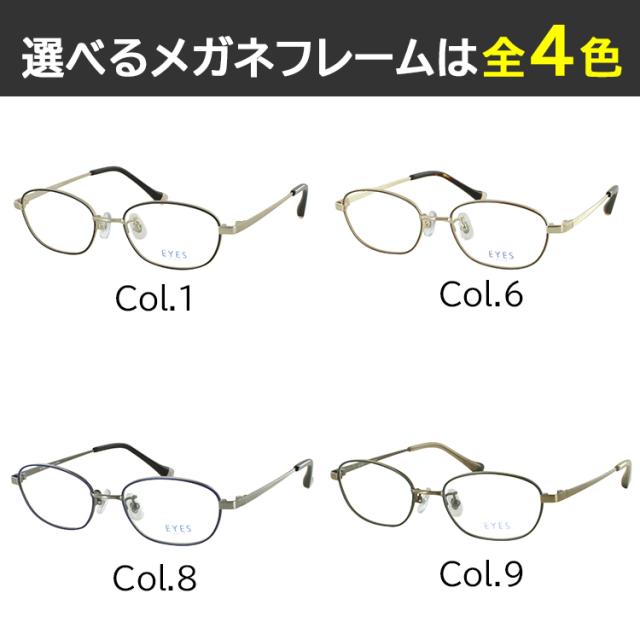 | <フレームカラー> COL.1 ブラック/マットゴールド COL.6 ブラウン/ゴールド COL.8 ブルー/ガンメタ COL.9 グリーン/アンティークゴールド | <素材> フレーム材質:メタル合金 テンプル材質:メタル合金 |