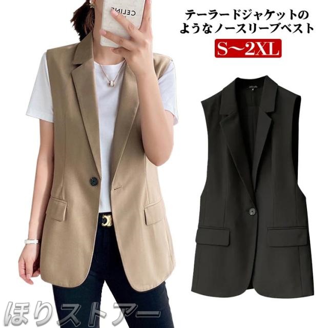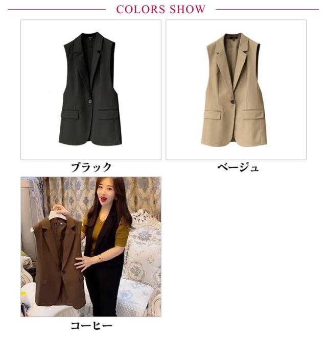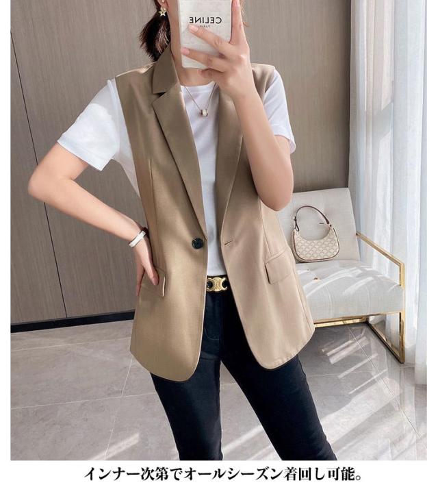 ジレ ベスト レディース ジレ レディース 秋 春夏 ベスト レディース 前開き ベスト レディース 春夏 トップス ベスト ミドルジレ ミドル サマージャケット ノースリーブ テーラードジャケット オフィス 重ね着 シンプル 通勤 OL おしゃれ 送料無料