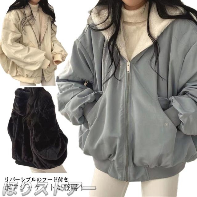 コート ボアブルゾン レディース 裏ボア ショート丈 長袖 ジャケット ジャンパー ボアブルゾン ふわふわ 2way リバーシブル ボアブルゾン アウター ボアジャケット もこもこ あったか 暖かい フード付き フェイクファー アウター ゆったり 大きいサイズ 秋 冬 防寒 大人
