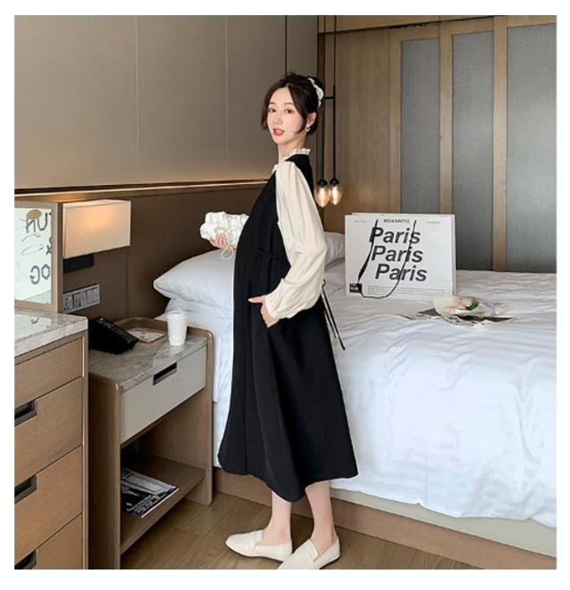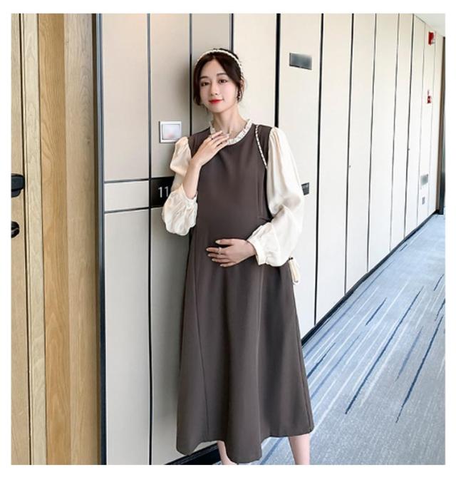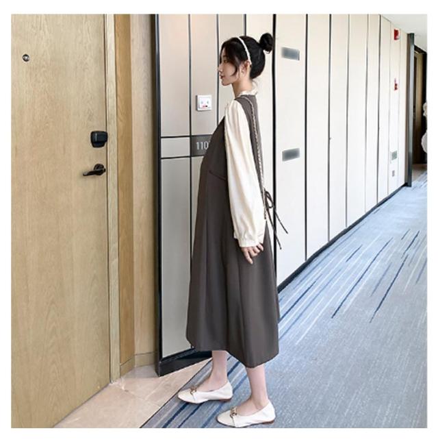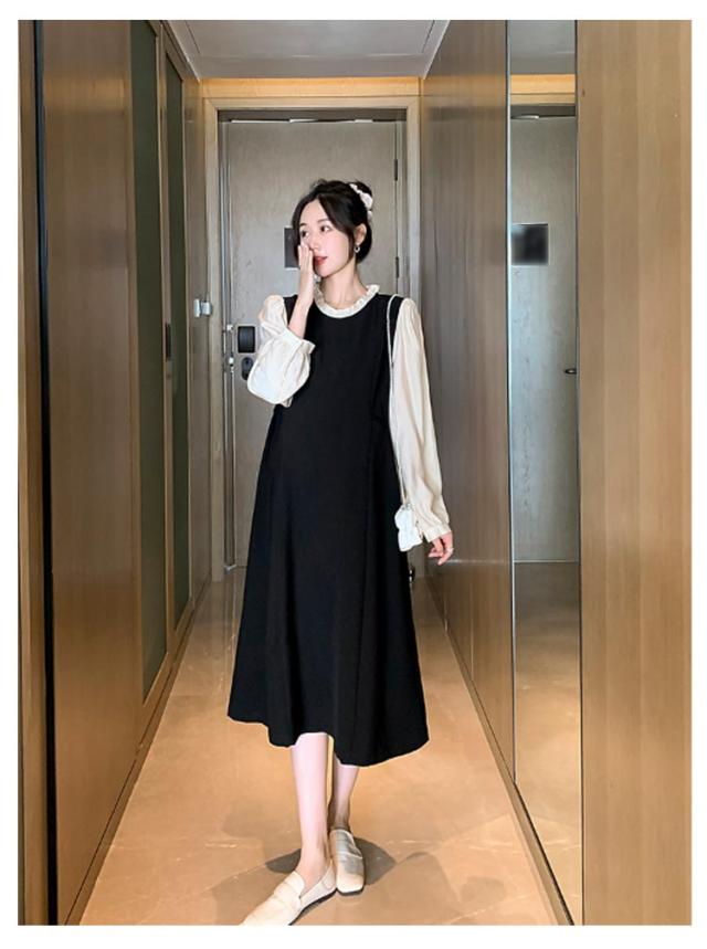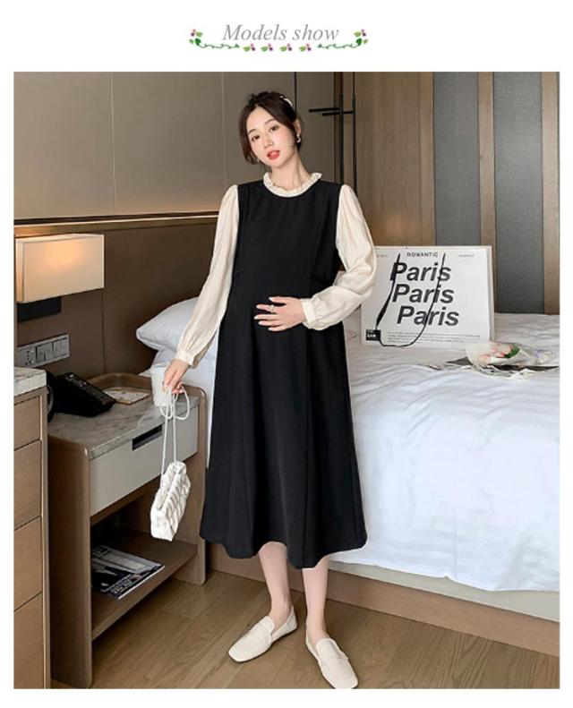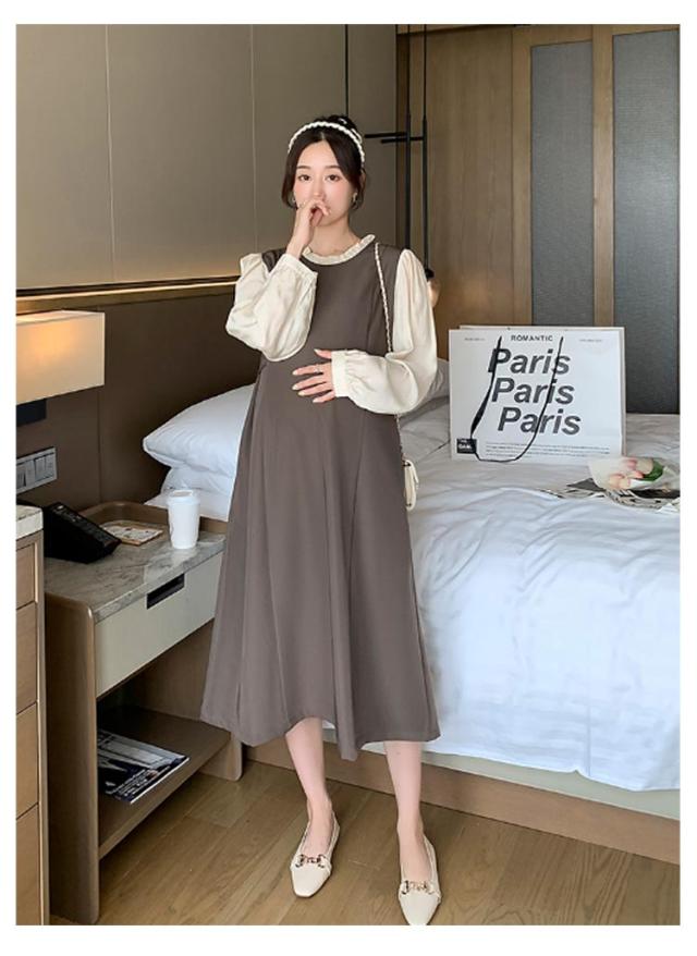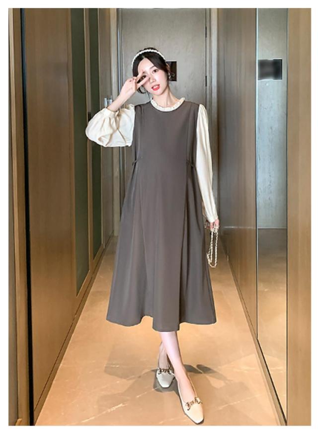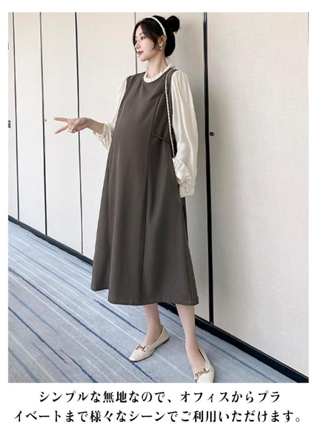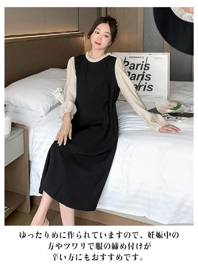 レイヤード風 ワンピース マタニティ レイヤード風 春秋冬 フレアワンピース 体型カバー 授乳ワンピ 授乳服 マタニティー 妊婦服 ワンピース 長袖 Aライン 大きいサイズ フリル お宮参り