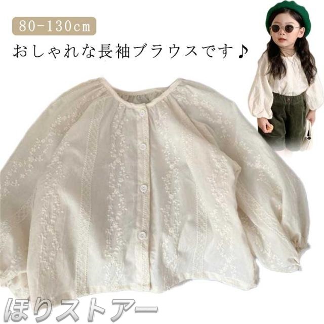 | おしゃれな長袖ブラウスです♪ シンプルなデザインで重ね着にもかわいい一枚です☆ ボリュームたっぷりの袖がかわいらしい、シアー感たっぷりな刺繍ブラウス。 ボタンを開けて羽織としても着用して頂ける。 ノーカラーで顔周りはすっきりとしたデザイン。 カジュアルにパンツに合わせても、ガーリーにスカートに合わせても、コーデの幅が広がる万能ブラウス。 気持ちの良い生地で、温かいです。かわいらしく、園服、通学、お受験、面接、発表会、七五三、フォーマル、冠婚葬祭でも使えます。クリスマス・お子様の誕生日・記念日などにプレゼントとして最適です。 | |