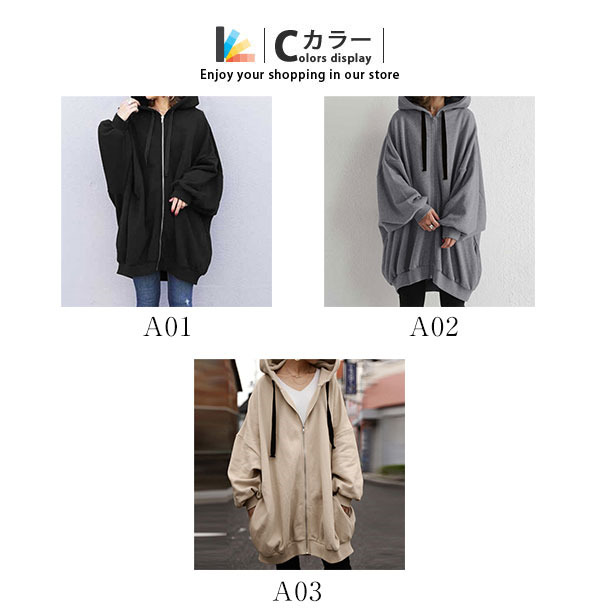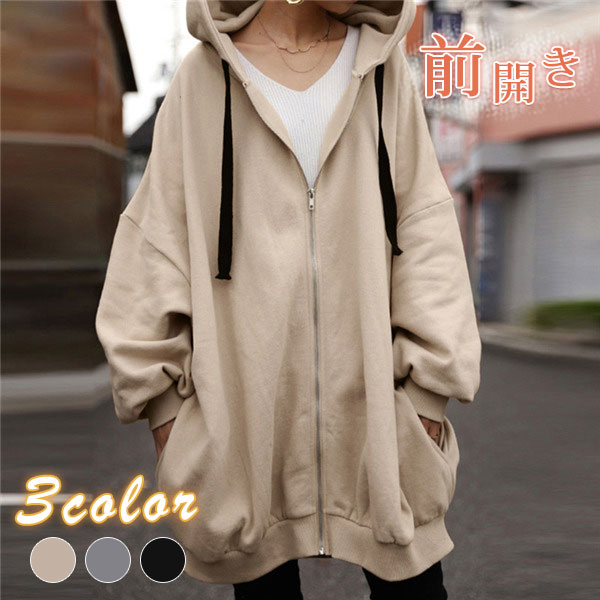 【ポイント10倍!】ジップパーカー パーカー レディース トップス 前開き ジップアップ 長袖 無地 カジュアル 羽織り アウター フード付き ゆった