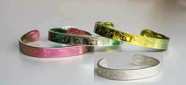 江戸時代から九頭の福駒は【商売】【出世】【縁談】【蓄財】【勝負事】【健康】【夫婦仲】【農漁業】【受験】の上昇運を象徴するといわれています。外側面には疾駆する九頭の福馬を、内側面には福駒のいわれを浮彫(エッチング工法)で表現してます。浮彫デザインのエッチング加工はチタン純度の高い素材のみに限られる工法で他に類を見ない希少な製品です。『何事も上手く(馬九)行く』と語呂合わせの縁起物としても親しまれている、九頭馬デザインです。■カラーと抗菌作用について■陽極酸化法という独自の発色技術を用いた美しいカラーはスタイルや個性に合わせて楽しめる豊富なバリエーションです。チタンを発色させる際にできた皮膜には『光抗菌作用』があり、太陽や蛍光灯の光で汚れ等を浄化し、常に清潔を保ちます。また、純チタンは軽量で耐久性に優れ、金属アレルギーの心配もありません。着けたままでの入浴や、海水浴も全てOKです。
