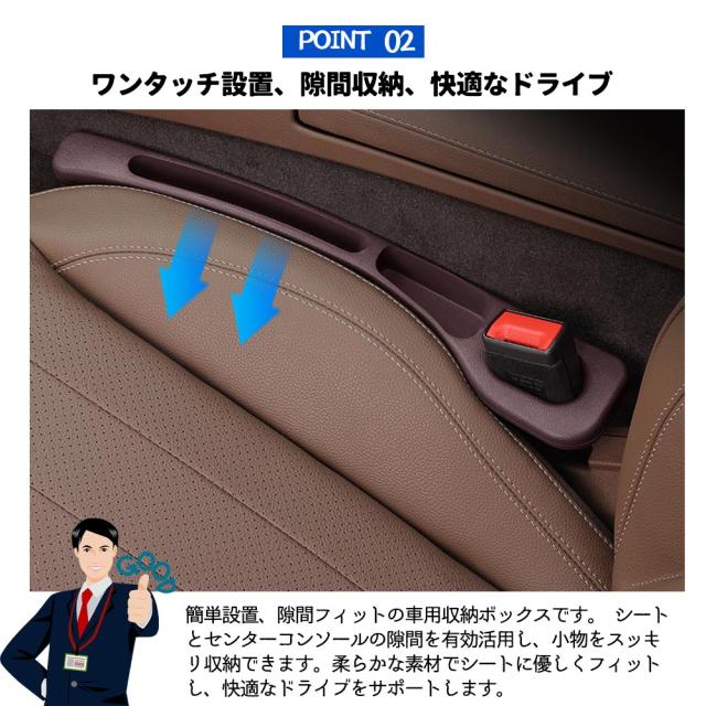 - 【ご注意】 本製品は汎用設計ですが、一部の車種ではセンターコンソールとシートの隙間が大きすぎたり、サイドブレーキが特殊であったりする場合があり、影響を受ける可能性があります。ご確認の上でお買い求め下さい。本製品は2個入りで、運転席用に1個、助手席用に1個、トヨタ、本田、日産、マツダ、ベンツなどの車種に使用できます。