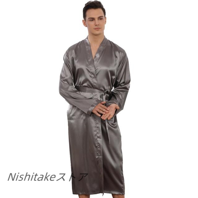 ルームウェア ガウン シルクタッチ バスローブ ナイトガウン メンズ 寝巻き ネグリジェ 部屋着 パジャマ ウエストリボン 大きいサイズ ロング