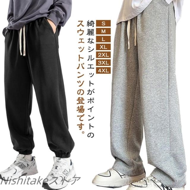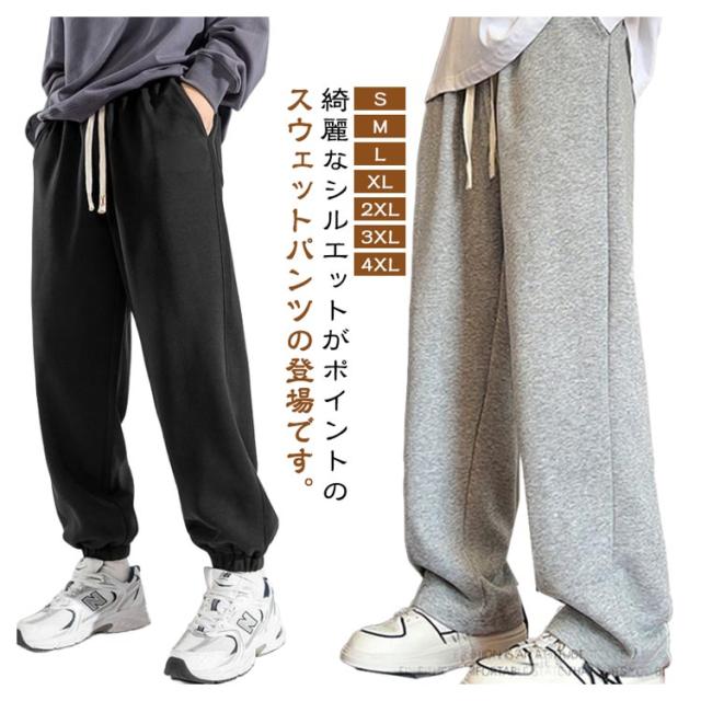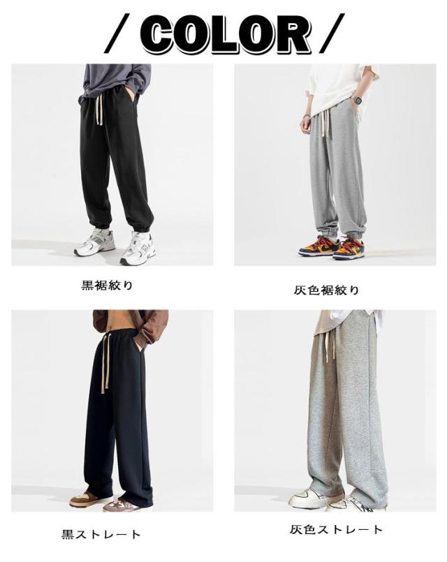 パンツ ランニング ワイドパンツ イージーパンツ 無地 スウェットパンツ スウェットパンツ カジュアルパンツ ストレート ルームウェア 部屋着 ウエストゴム ストリート系 メンズ リラックスパンツ 薄手 春 夏 秋 冬 グレー ブラック