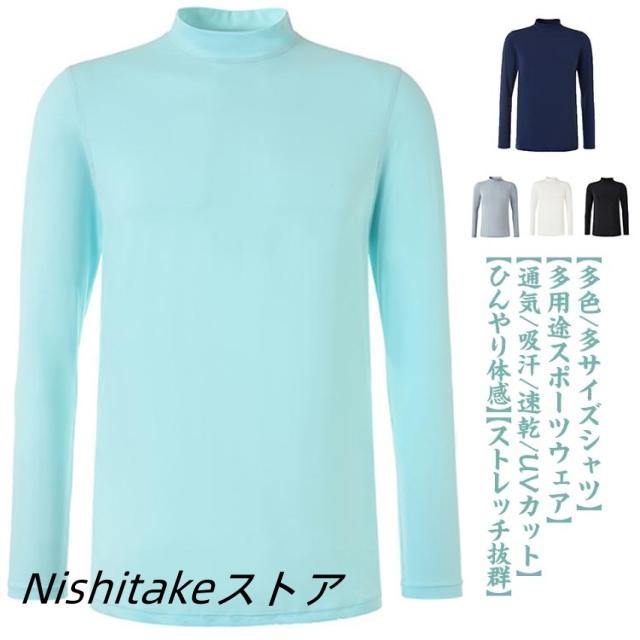 UPF50+ ゴルフウェア メンズ 接触冷感 UVカット 長袖 インナー Tシャツ ひんやり 吸水速乾 インナー アンダーシャツ ゴルフ ハイネック インナーシャツ アンダーウェア テニス トラベル ランニング スポーツ アウトドア 送料無料