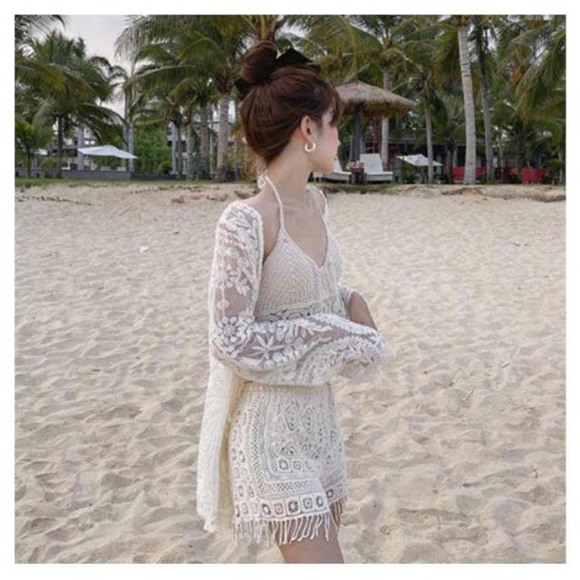 | シンプルながらこなれ感もあり、肌の露出が少ないデザインが嬉しい3点セット水着。 揺れるタッセルを寄せて作る美しい胸元。ふんわりシルエットでお腹周りをカバー! 総レースのデザインが上品で女性らしい印象に。柔らかなフラワー柄がとってもキュート。 お洋服との相性もいいので、ラッシュガードとビキニに、お手持ちのボトムスやレギンスを合わせるのも◎ そのままコンビニに寄り道もできちゃうスタイル。レジャーだけでなく公園での水遊びにもぴったり! | |