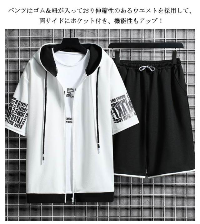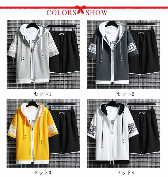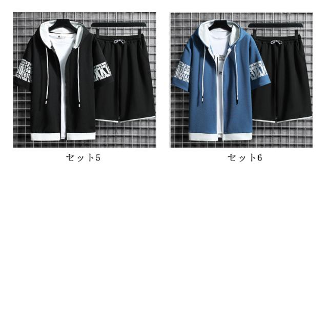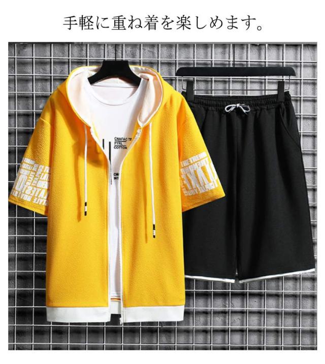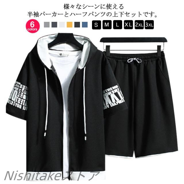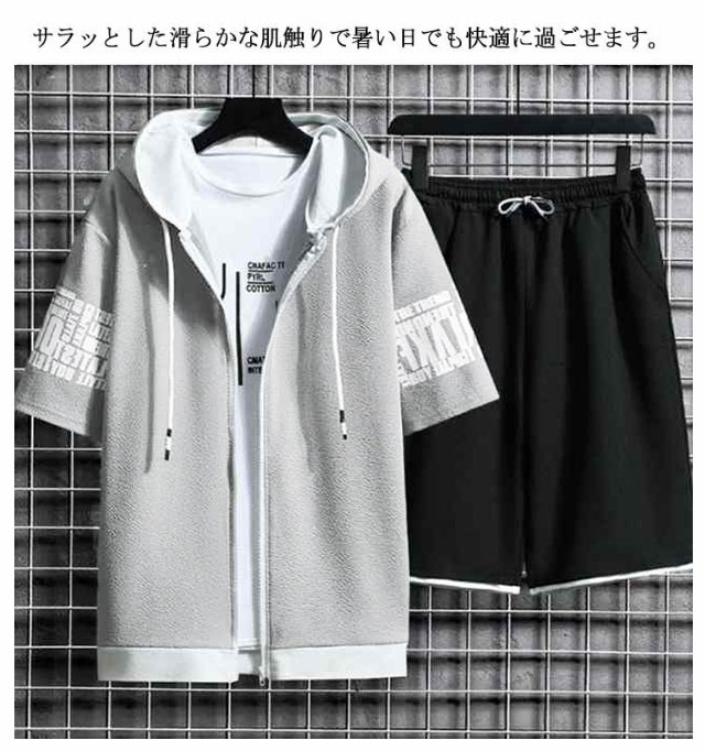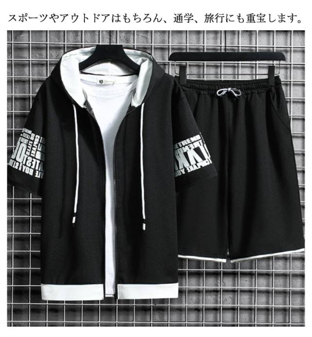 セットアップ 上下セット 半袖 パーカー メンズ ハーフパンツ スポーツウエア ジャージー スウェット 春夏 ルームウェア 運動着 ゆったり フード付き カジュアル ジップアップ アウトドア ジャージ