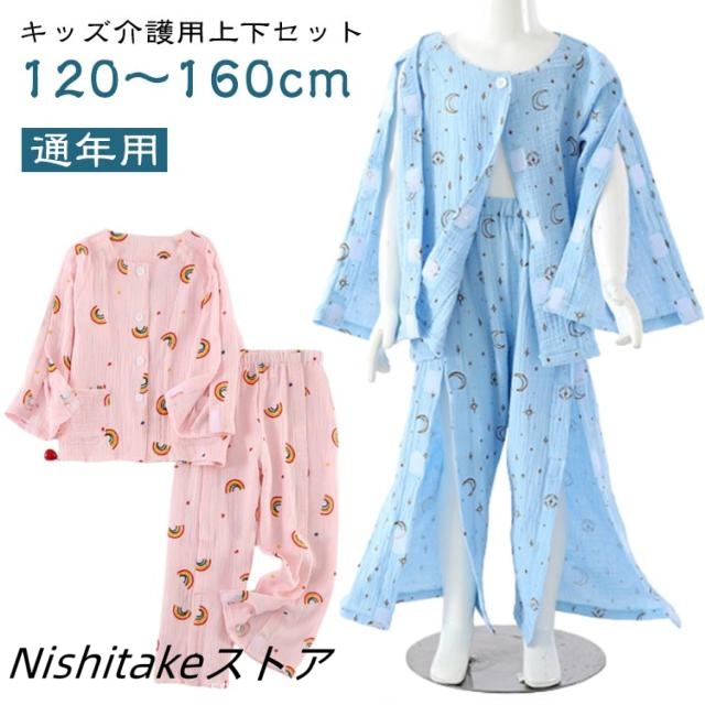 冬 ガーゼ 上下セット 秋 ズボン ガーゼ 男の子 トップス 夏用 女の子 介護用パジャマ 子供用 通年用 パジャマセット ボトムス 長袖 春 フルオープン 介護用ズボン 着脱簡単 マジックテープ介護 全開 要介護 術後 入院