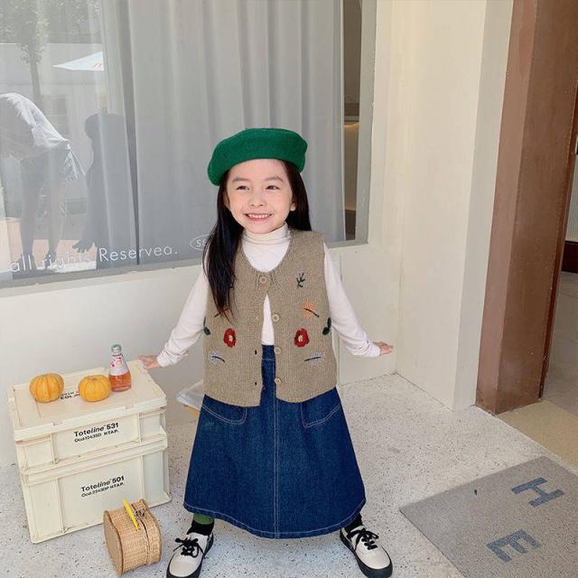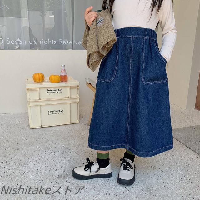 デニムスカート キッズ スカート ロングスカート ボトムス ロング丈 ハイウエスト 秋冬 シンプル ハイウエスト 大きいサイズ かわいい 110 120 130 140 150 160 送料無料
