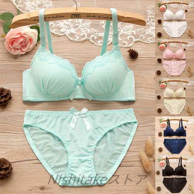 ノンワイヤー ブラ&ショーツ 上下セット レディース かわいいレース下着
