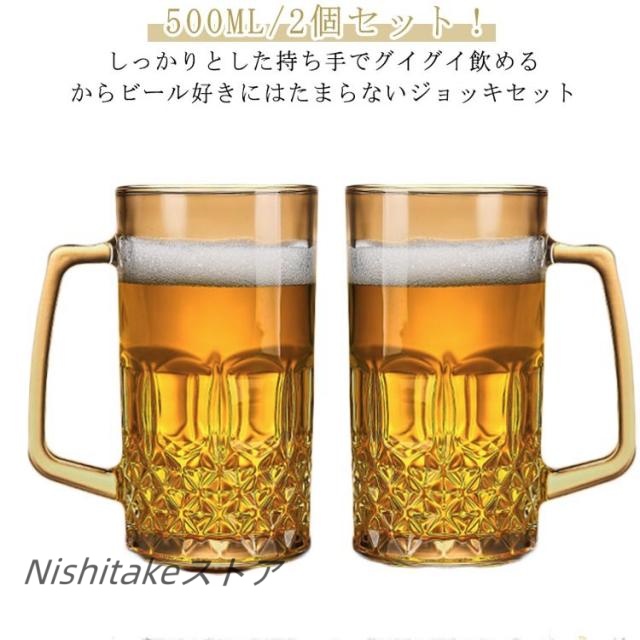 ビアグラス 大容量 取っ手付き 500ml ガラス ジョッキ ビールジョッキ グラス ビールジョッキ ビール 持ちやすい マグカップ カップ おしゃれ クリア ビアジョッキ コップ ジョッキグラス 透明 2個セット 誕生日 ギフト 結婚祝い 内祝い 敬老の日 プレゼント 家庭用 飲食店
