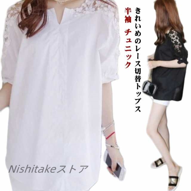 春 切り替え 半袖 レディース シャツ 上品 チュニック 透け感 カジュアル きれいめ おしゃれ カットソー tシャツ 肩出し 夏 トップス ブラウス マタニティ 清楚 ゆったり Tシャツ 肩見せ レース 大きいサイズ 無地 可愛い