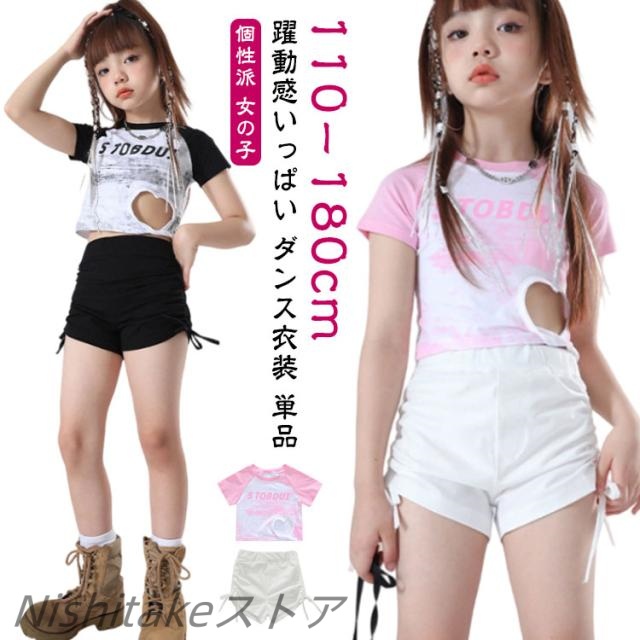 ショートパンツ ダンスパンツ 半袖 ショーツ Tシャツ ダンス衣装 単品 ダンス衣装 女の子 黒 チア キッズダンス かわいい 練習着 白 かわいい 舞台 hiphop K-pop 団体服 演出服 ストリートダンス ジャズダンス ヒップホップ