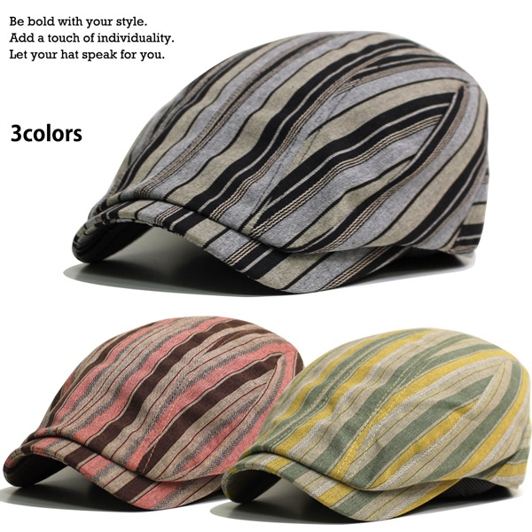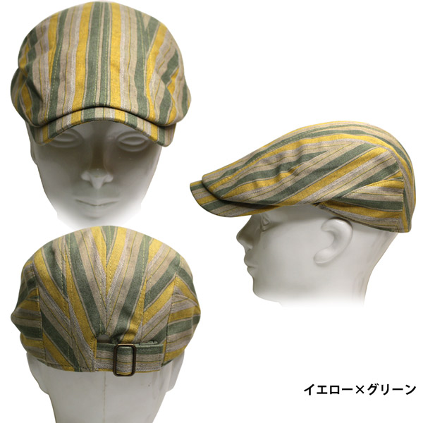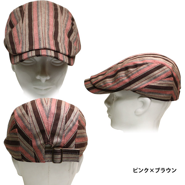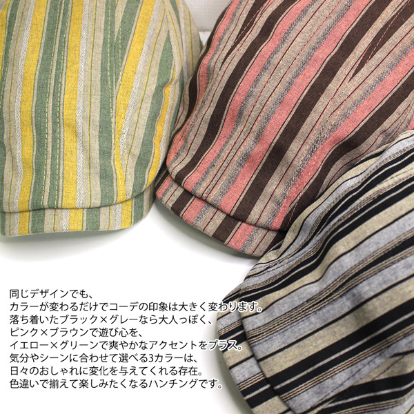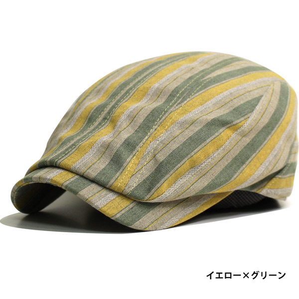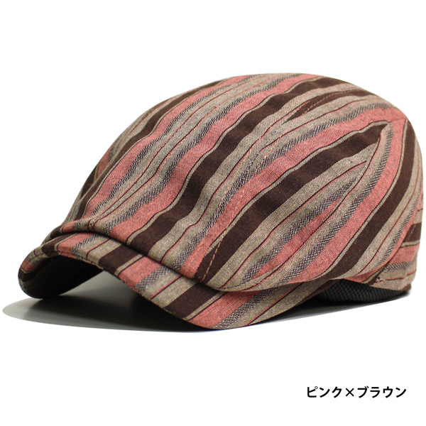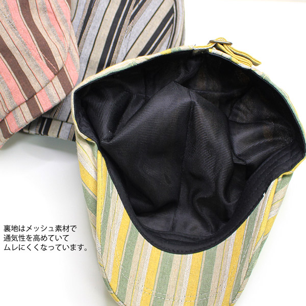 ハンチング メンズ 帽子 レディース ハンチングキャップ 裏地メッシュ 蒸れにくい 通気性抜群 ハンチング帽 コットン 綿 ストライプ カジュアル おしゃれ アクセントストライプ 春夏