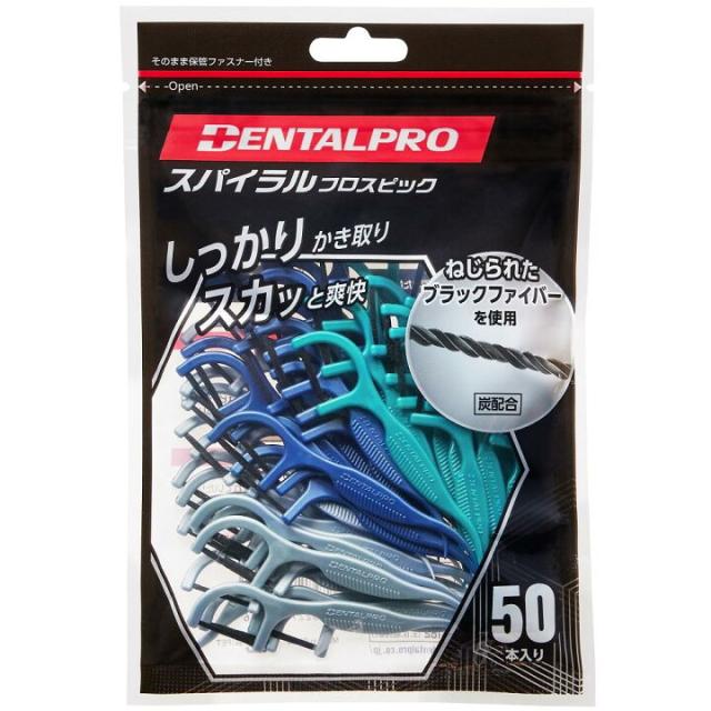 デンタルプロ スパイラルフロスピック 50本入 歯間ブラシ ハンドル 幅広設計 滑り止め加工 持ちやすい