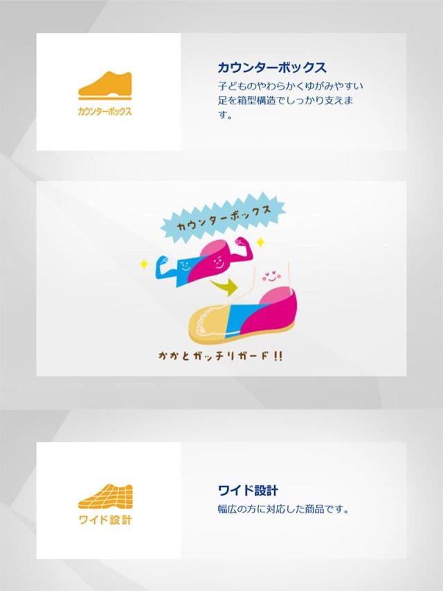 子どものやわらかくゆがみやすい足を箱型構造でしっかり支えます。
