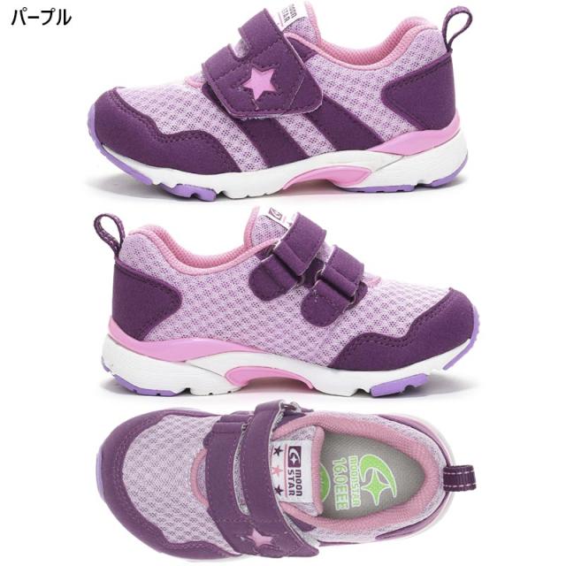 3E 幅広 ワイド ムーンスター ジュニア キッズ MS C2259 男の子 女の子 靴 シューズ スニーカー マジックテープ ベルクロ 撥水 抗菌 防臭 ブラック 黒 グレー ネイビー パープル 灰色 送料無料 MoonStar