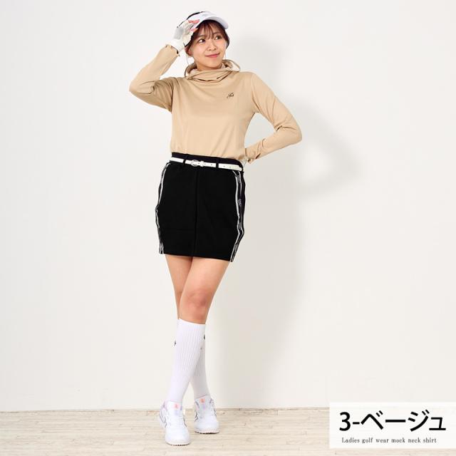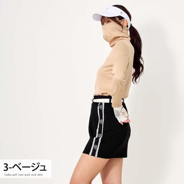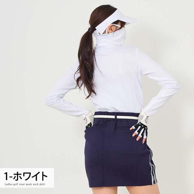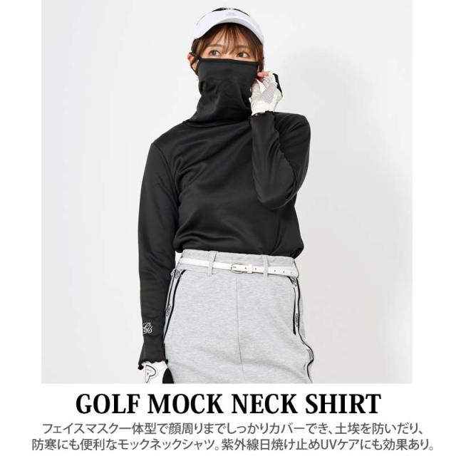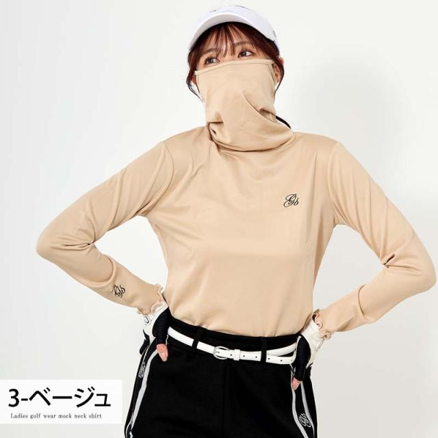 S~XL 新作 ゴルフウェア レディース モックネック gs GOLF ポロシャツ ハイネック 長袖 フェイスカバーマスク一体型 UVケア 紫外線 日焼け対策 ストレッチ トップス 秋冬 春夏 送料無料 ゆうパケ